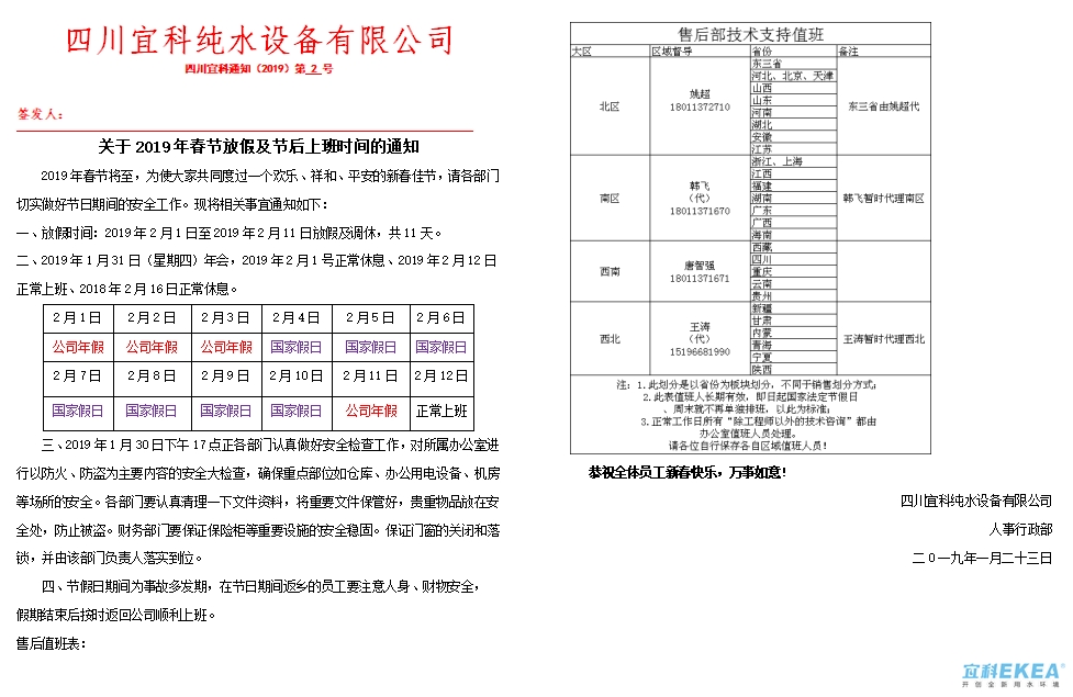 2019年春節(jié)將至,為使大家共同度過一個歡樂、祥和、平安的新春佳節(jié),請各部門切實做好節(jié)日期間的安全工作通知如下: