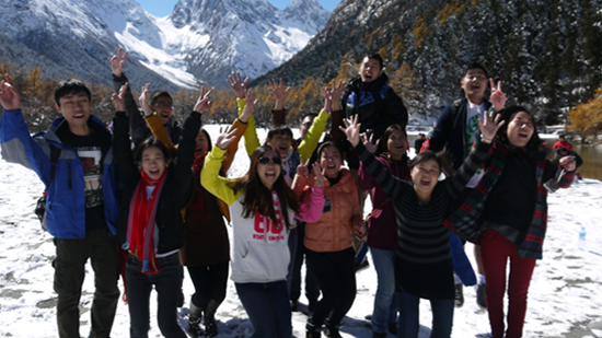 天氣很好,太陽溫暖照耀,穿過高大的松柏照在厚厚的積雪上,雪地間偶有小溪淙淙的流淌,水清而涼。腦子里閃過《紅樓夢》里的一句:“白茫茫一片大地好干凈”。人們的嬉笑聲驚醒沉醉的我,一群群大人像孩子一樣的打雪仗,互相追逐,喜笑顏開。南方人哪見過這么厚的雪,踩上去還咯吱咯吱的響,南方人賞雪的心情,跟初戀時見愛人的心情大抵相同吧,都一樣的心花怒放,情不自禁。
